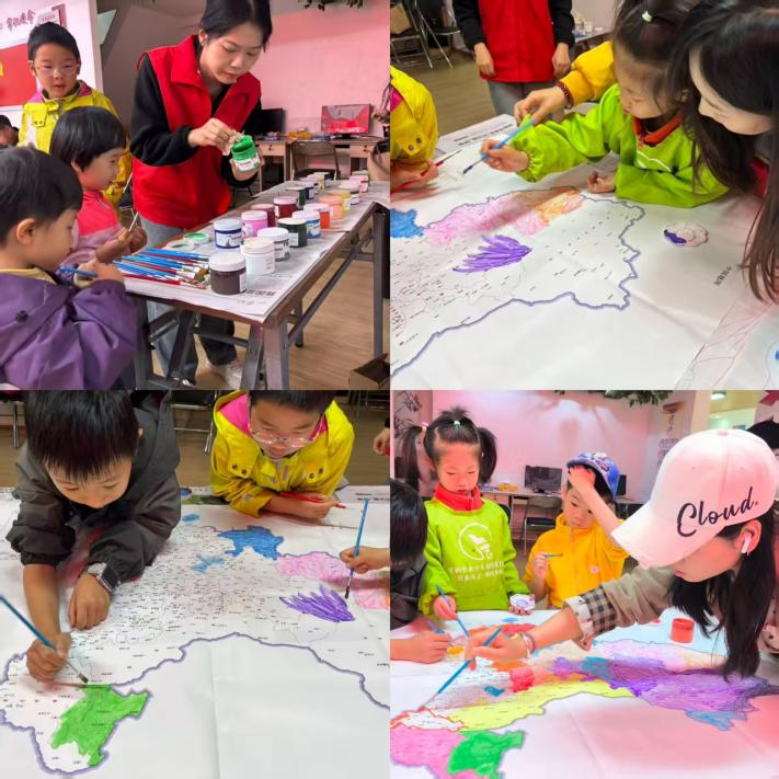 采用绘画替代枯燥说教,将抽象的“版图”概念转化为具象的色彩与线条,在创作中自然理解“中国是什么样的”,在孩子们的心目中种下爱国的种子。同时丰富了社区孩子们的假日生活,尤其是为双职工家庭、困境家庭孩子提供公益活动资源,通过亲子共同参与(如协助创作),增强了社区的凝聚力与邻里温度。以社区为最小单位,推动国家版图意识教育下沉到基层,让“维护领土完整”的观念从小扎根,是一种低成本、广覆盖的国民教育公益实践。