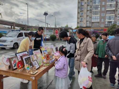 互动区域的暖心驿站手工作品义卖点热闹非凡,一件件精美的手工作品吸引了众多居民驻足挑选。大家一边欣赏着这些作品,一边询问价格,不少人毫不犹豫地掏出钱包购买,为社区慈善基金贡献自己的一份力量。此次义卖活动共筹得善款201元。同时,非遗手工体验点也备受青睐,居民们在专业老师的指导下,亲手体验非遗手工制作的乐趣,感受传统文化的独特魅力。义诊、义剪、便民服务区域同样人头攒动,秩序井然。整个活动现场充满了欢声笑语,洋溢着温馨和谐的氛围,充分展现了社区居民团结友爱、互帮互助的良好精神风貌。